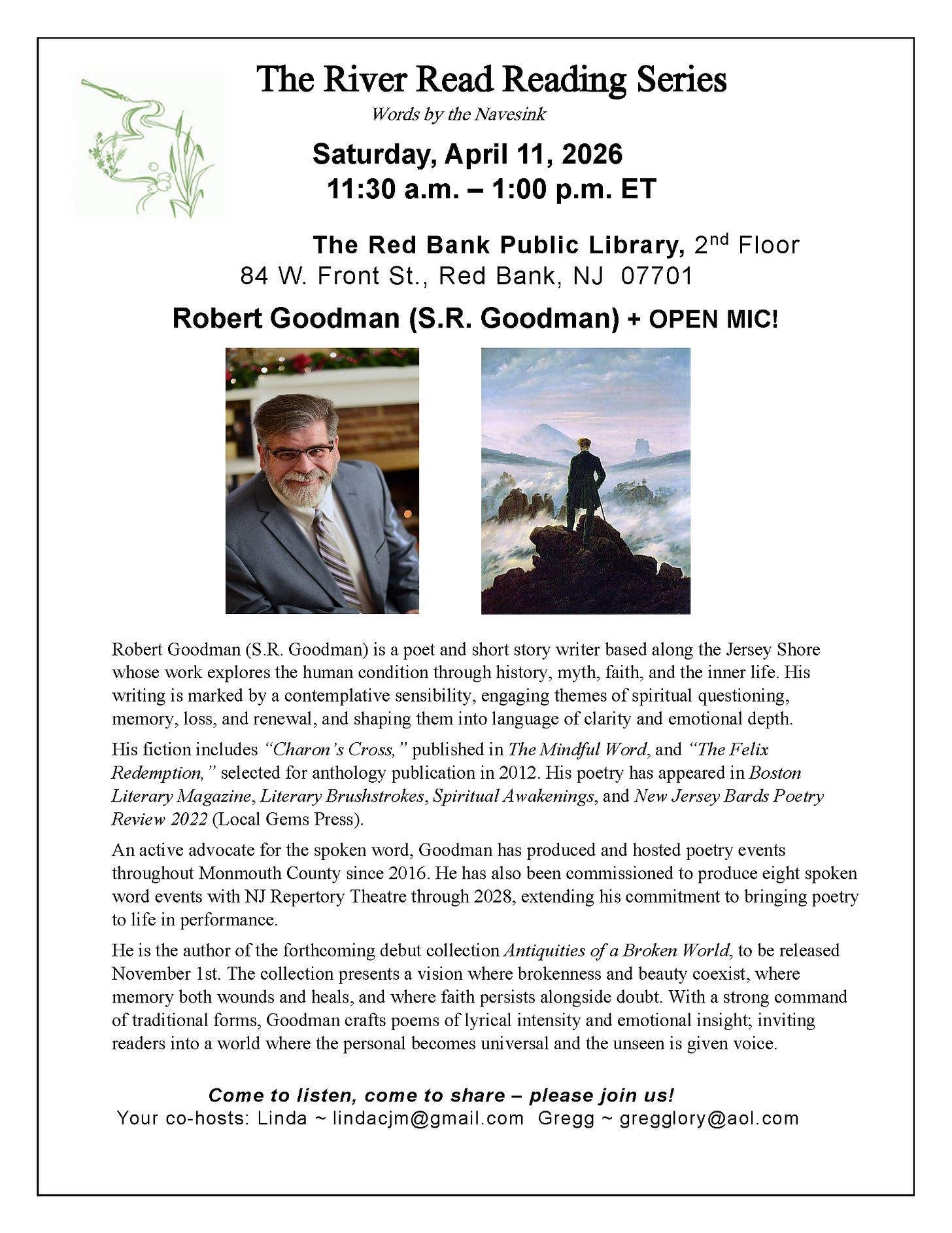 Save the dates! Poets from all over New Jersey will participate! They will be reading the works of New Jersey’s Revolutionary-era writers as well as original work of their own. Program: