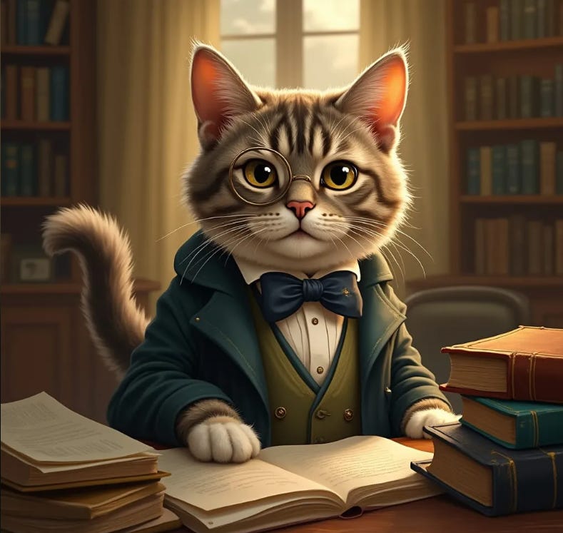 It is a rare moment, even in the illustrious annals of Whiskerwood University, when the course of world literature is whisked - nay, buffeted - by a singular feline revelation. Picture, if you will, the scene: an autumn haze suffusing the library’s most contested windowsill (Form 27B still pending approval), the dust motes swirling in apparent imitation of Schrödinger’s infamous quantum probabilities. There, upon a precarious stack of manuscripts (balanced, admittedly, on a Bronze Age scratch post requisitioned from the Department of Archaeological Textures), I encountered what must be the most epochal discovery since the unraveling of string theory’s constituent feline fibers.